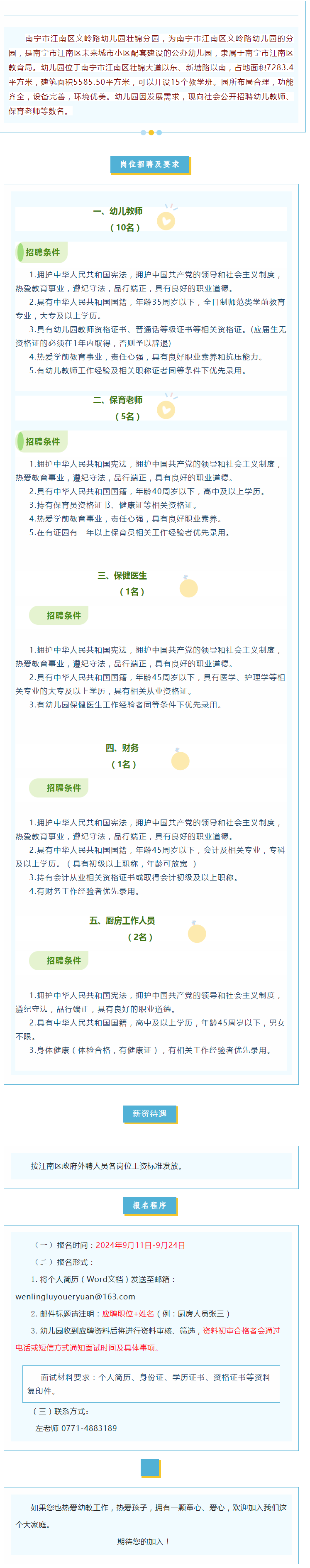 原文標題:南寧市江南區(qū)文嶺路幼兒園壯錦分園?招聘公告
