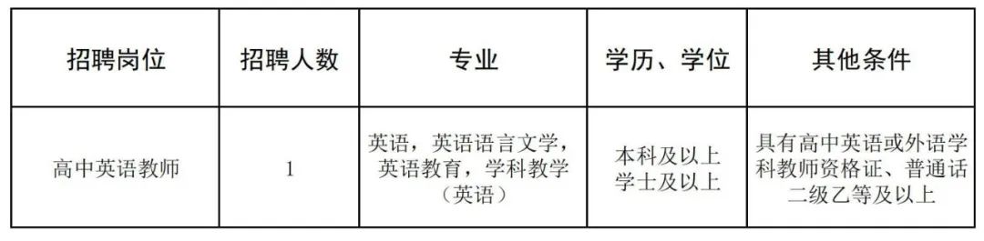 根據(jù)發(fā)展需要,學(xué)校擬招聘高中英語(yǔ)頂崗教師共1人,具體招聘信息如下: