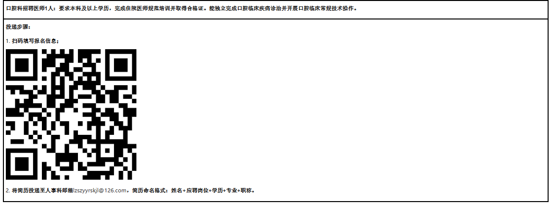 原文標題:口腔科醫(yī)師招聘啟事